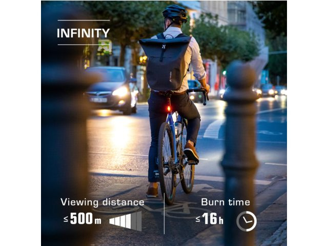 Sigma is bijzonder trots op het nieuwe INFINITY USB achterlicht met extreem lange brandduur van 16 uur. Een sportief design zorgt ervoor dat deze een perfecte metgezel is op de racefiets, mountainbike of gravelbike. Bij de INFINITY is een nieuwe lens ingebouwd, welke een montage van het achterlicht parallel aan de zadelbuis mogelijk maakt. Daardoor past het achterlicht harmonieus op de achterzijde van de fiets. Het extreem slanke en slechts 25 gram wegende achterlicht beschikt over het RAI Keurmerk Fietsverlichting (RKF) en de Duitse StVZO wettelijke goedkeuring.