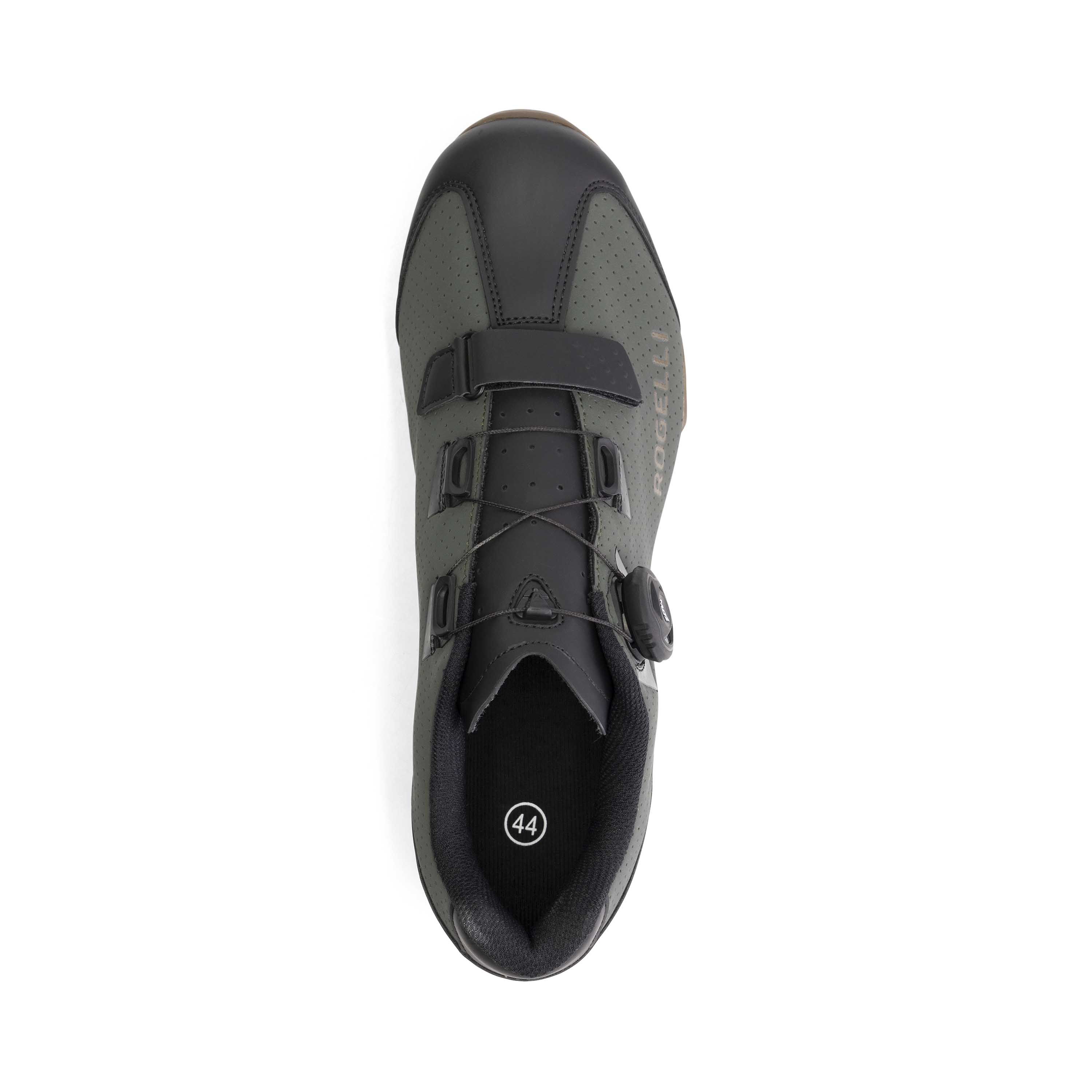 De Rogelli R400x MTB-schoen is gemaakt om het maximale uit je mountainbike-rit te halen. Deze fietsschoenen zijn voorzien van een nylon zool voor een uitstekende grip op het pedaal en zijn geschikt voor SPD-pedaalsystemen. Door het geperforeerde PU-leer en het Atop-sluitmechanisme met handige draainknop en een extra klittenbandsluiting wordt een goede pasvorm en voldoende stabiliteit gegarandeerd. Het gebruik van ademend mesh in combinatie met kleine gaatjes in het synthetische leer zorgt voor een aangename mate van ventilatie.